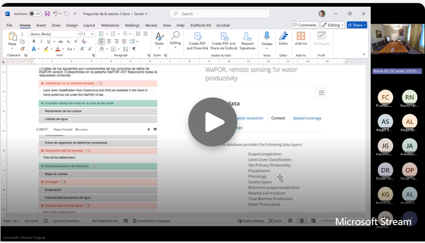 Validación y análisis de datos: Capacitación para validar datos de teledetección (por ejemplo, evapotranspiración, precipitaciones y uso de aguas subterráneas) comparándolos con datos de campo.