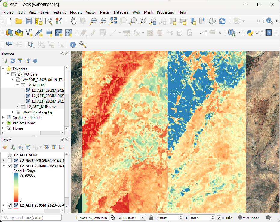 You can see that there's now a subfolder with the Workspace name and the data/time. Under that folder, there's a subfolder with the name of the product. Within that folder are the three rasters with the monthly AETI.