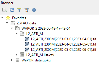 button to choose a folder and filename for the GeoPackage, e.g. Z:\FAO_data\WaPOR_data.gpkg.