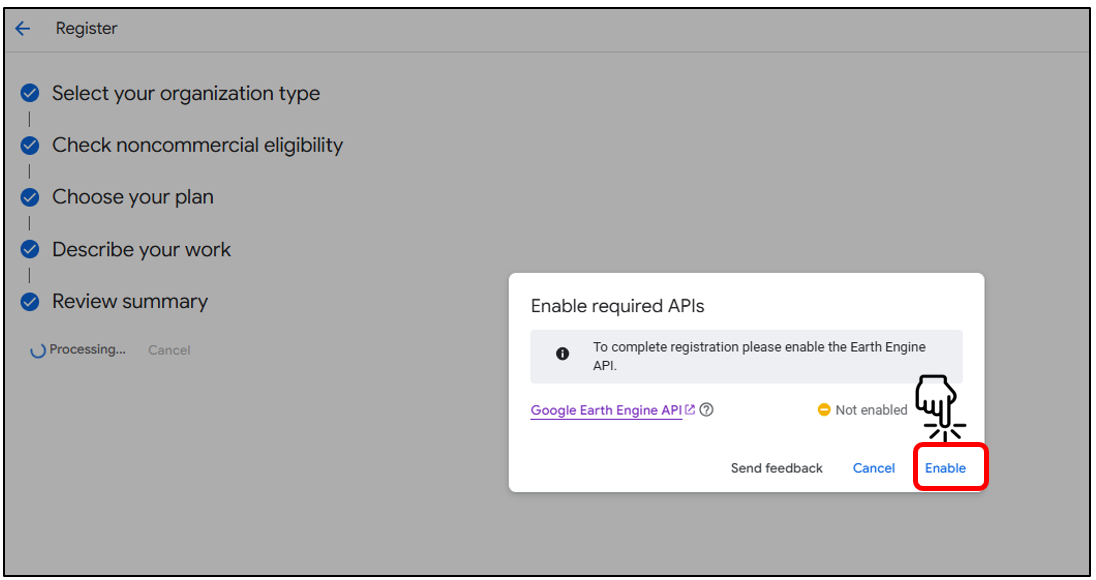 Access the API: During the registration process, a dialog box will appear titled "Enable required APIs".