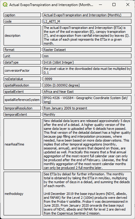 Note that for Dekadal data we need to define the format. By default, FAO supplies this data as average. You can change it to cumulative values if needed.