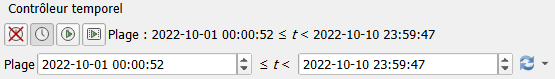 10. Dans le panneau du Contrôleur temporel, cliquez  sur pour configurer la plage. Ensuite, cliquez sur  pour définir la plage à celle définie par les données.
