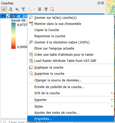 2. Faites un clic droit sur la couche et choisissez Propriétés... dans le menu contextuel. Vous pouvez aussi double-cliquer sur la couche.